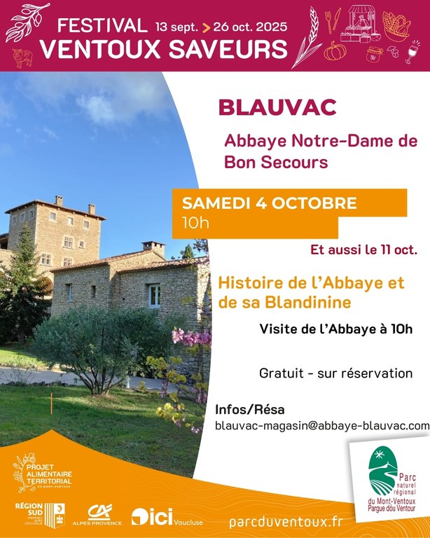 Participation gratuite, mais réservation demandée, par email uniquement : blauvacmagasin@abbaye-blauvac.com.